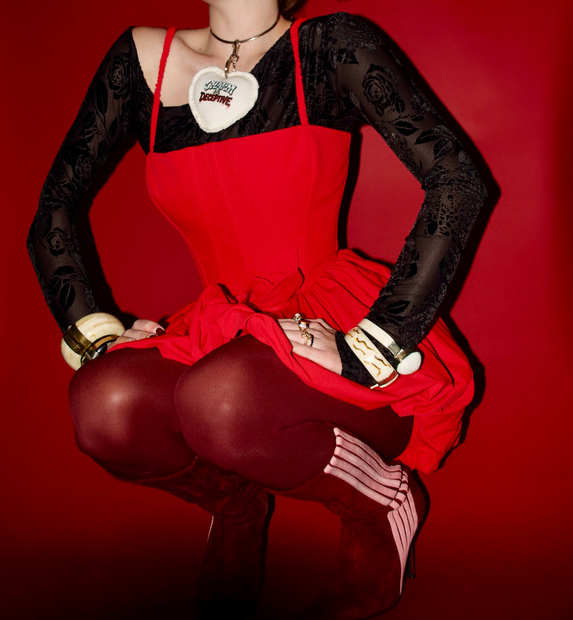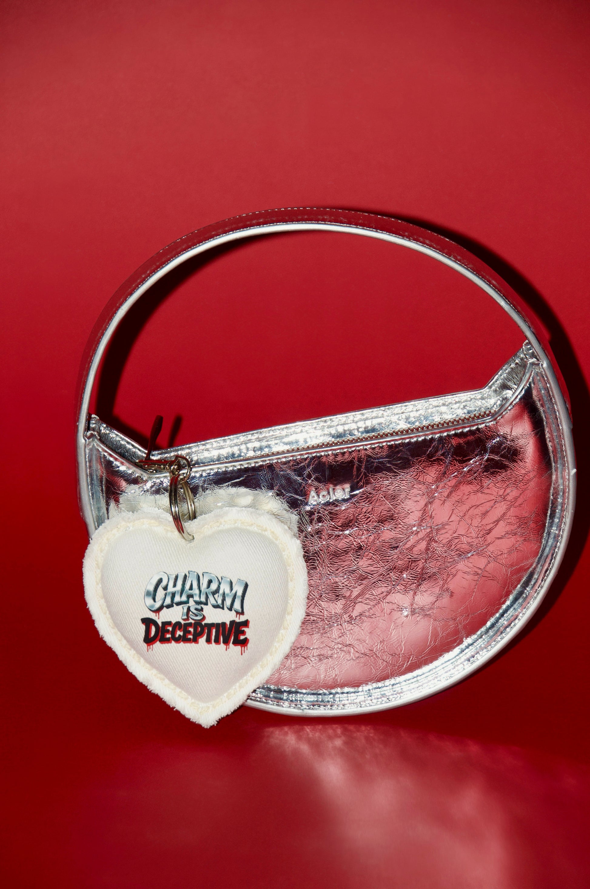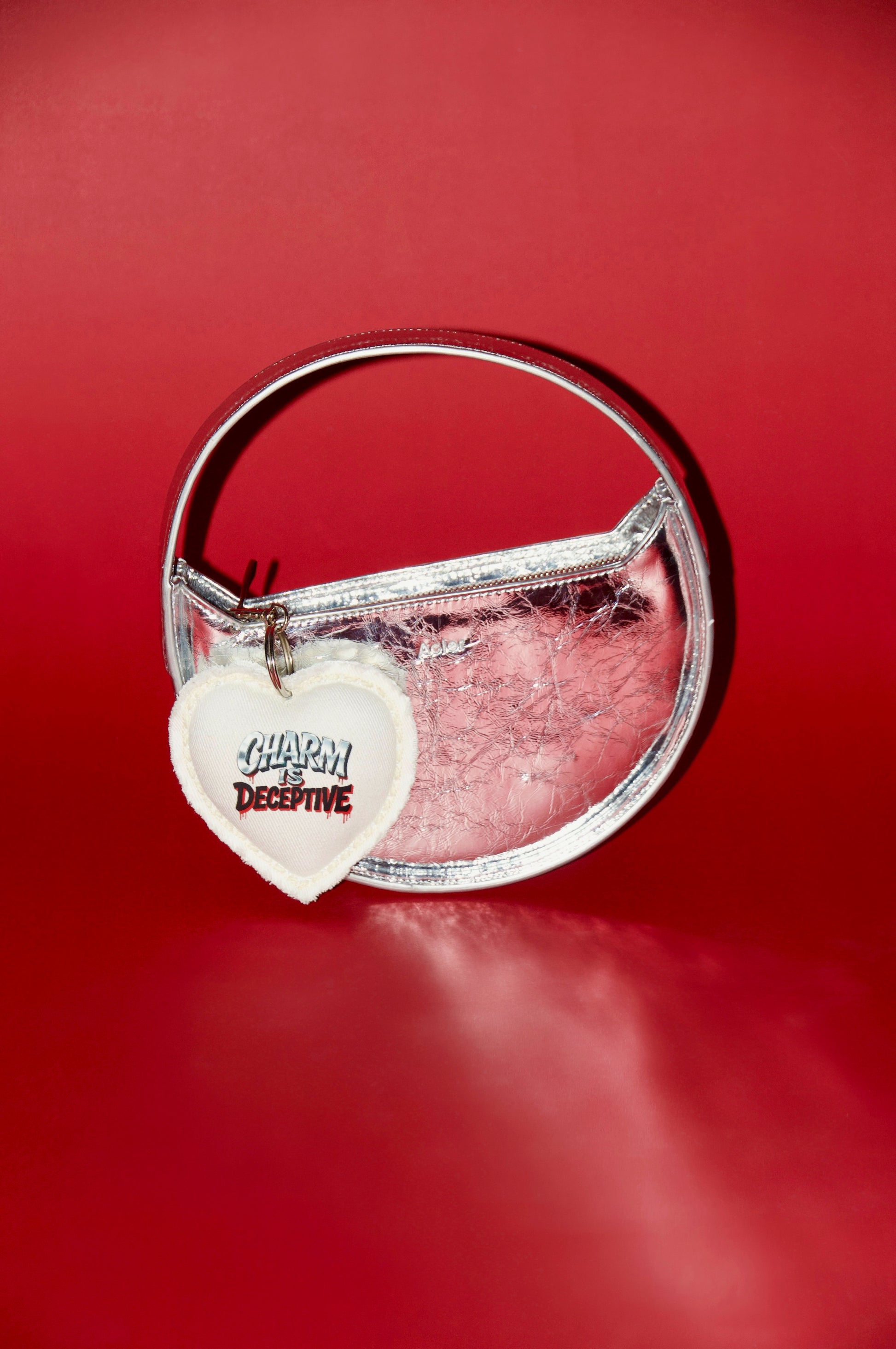 White denim heart with silver + red graffiti — a visual reminder that while charm fades, the Spirit remains.