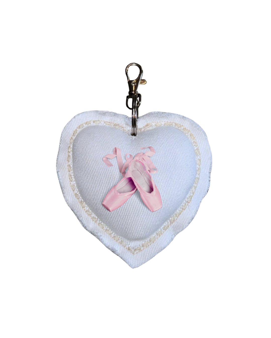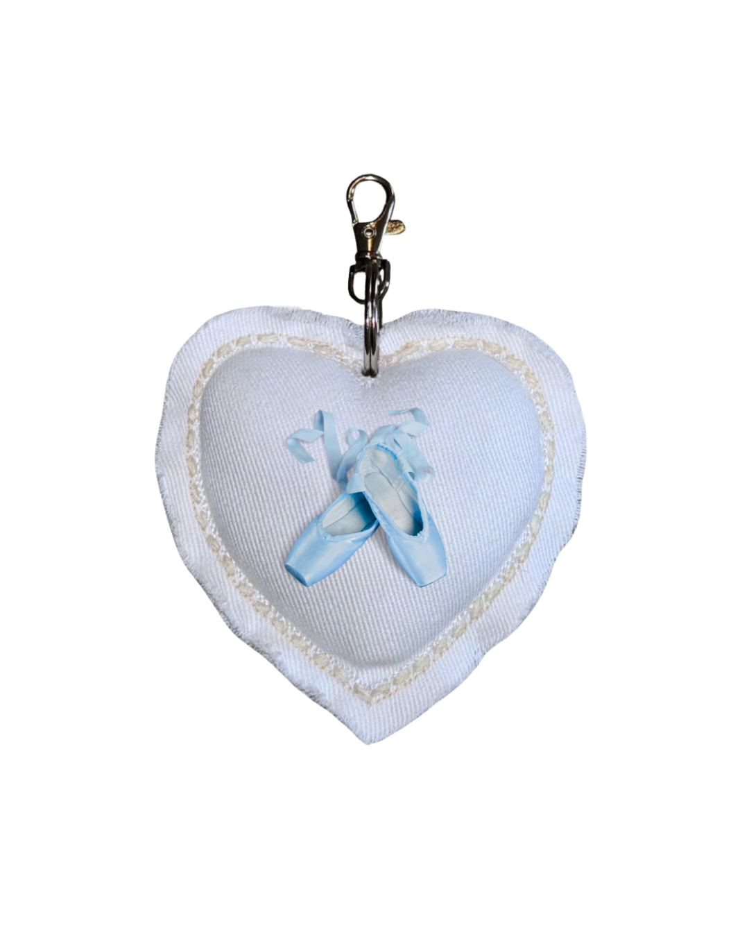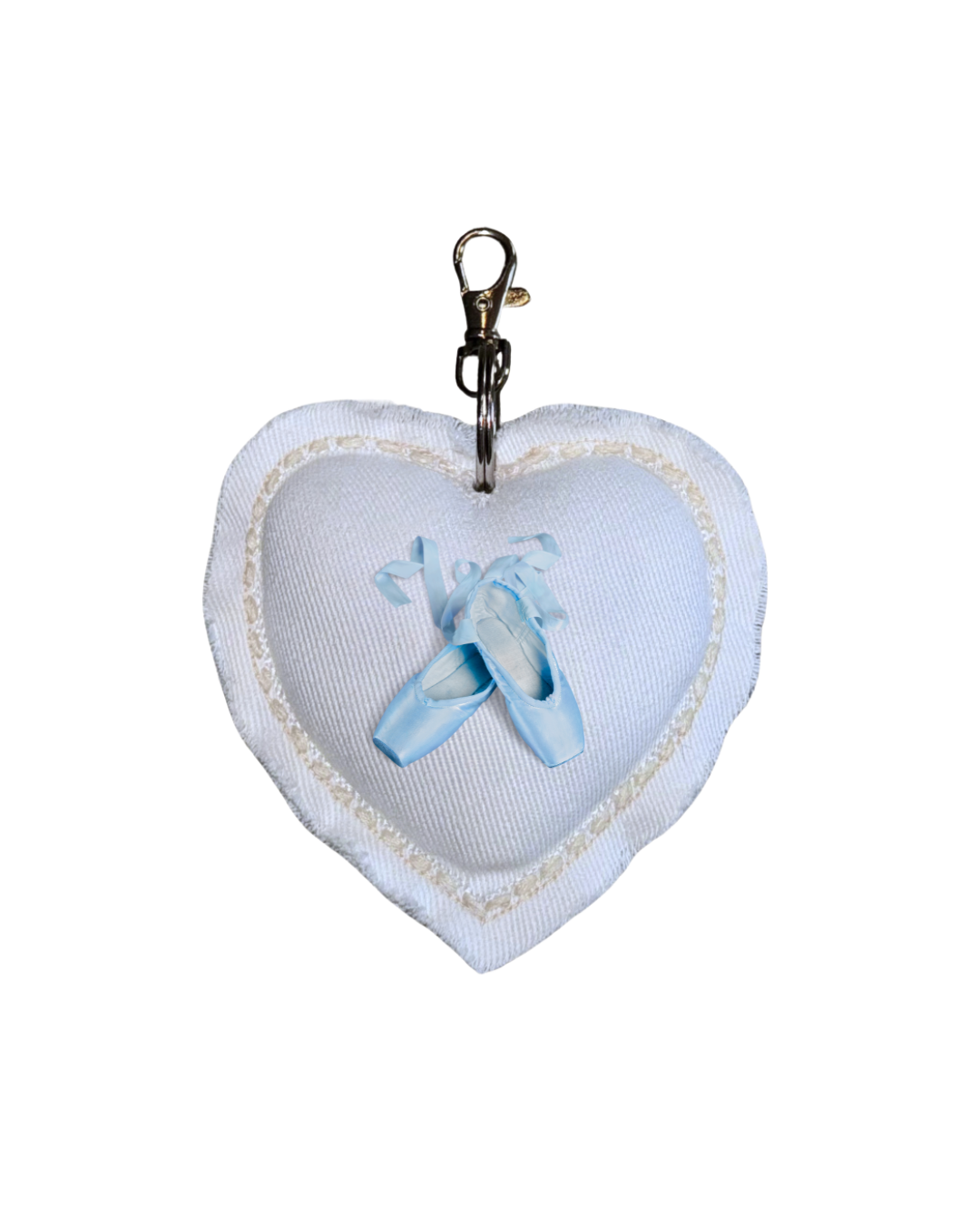 Material: Premium denim fabric with matching stitch and custom ballet shoes. Silver metal ring with claw clip.