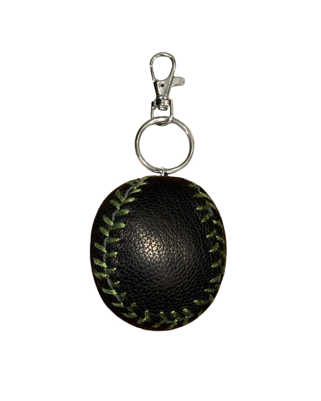 Material: Black leather with green trim and silver metal ring claw clip.